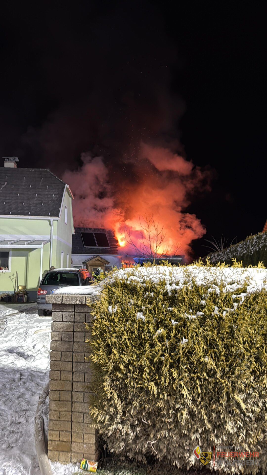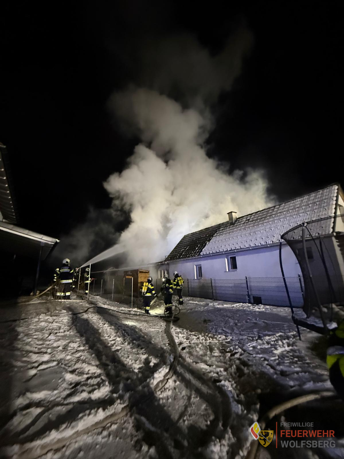 Aus bisher unbekannter Ursache geriet ein Nebengebäude in Brand. Bereits beim Eintreffen der Einsatzkräfte stand das Gebäude im Vollbrand. Es wurde ein umfassender Außenangriff durchgeführt. Dank der Zusammenarbeit der Feuerwehren wurde umgehend die Wasserversorgung sichergestellt, so wurde die Löschwasserversorgung aus dem naheliegenden Bach und von einem Hydranten aufgebaut. Atemschutztrupps führten auch einen Innenangriff durch, um gleich Glutnester zu bekämpfen.