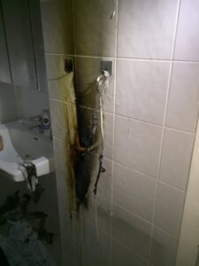 In einem Mehrparteienwohnhaus brach im Badezimmer wegen eines technischen Defekts ein Brand eines Heizlüfters aus. Durch den beherzten Einsatz der Bewohner konnte dieser bereits bei dem Eintreffen der Feuerwehr mittels einem Feuerlöscher eingedämmt werden. Nachdem Eintreffen an der Einsatzstelle wurde vom ersten Atemschutztrupp umgehend ein Innenangriff durchgeführt. Der Atemschutztrupp durchsuchte weiters das ganze stark verrauchte Mehrparteienhaus nach Personen. Gegen 20:30 konnte schließlich "Brand aus" gegeben werden und die ersten Einsatzkräfte wieder in ihre Rüsthäuser einrücken.