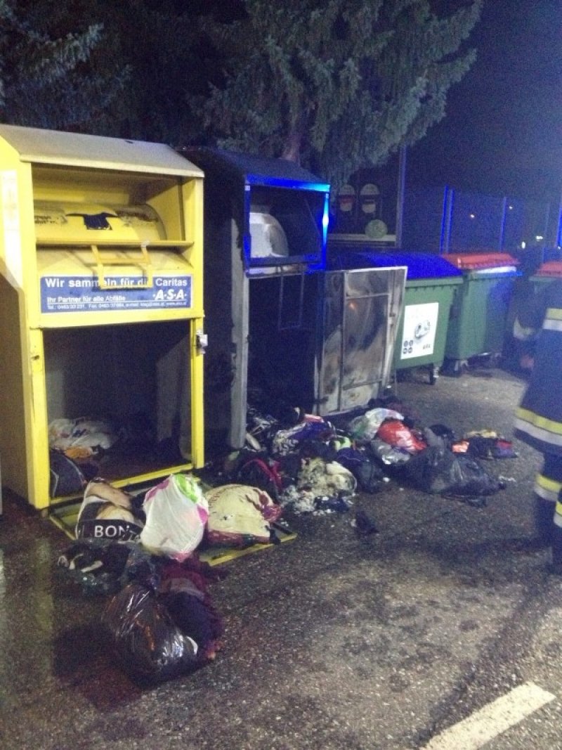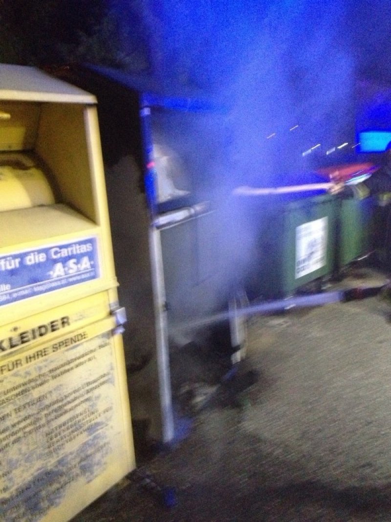 Aus unbekannter Ursache gerieten auf einer Müllinsel mehrere Müllcontainer in Brand. Der Brand konnte mittels Hochdruckrohr rasch gelöscht werden.