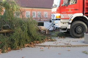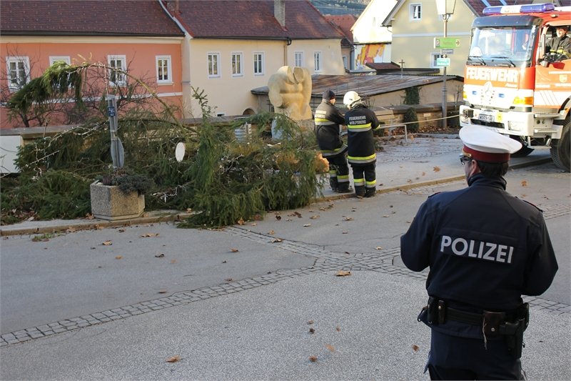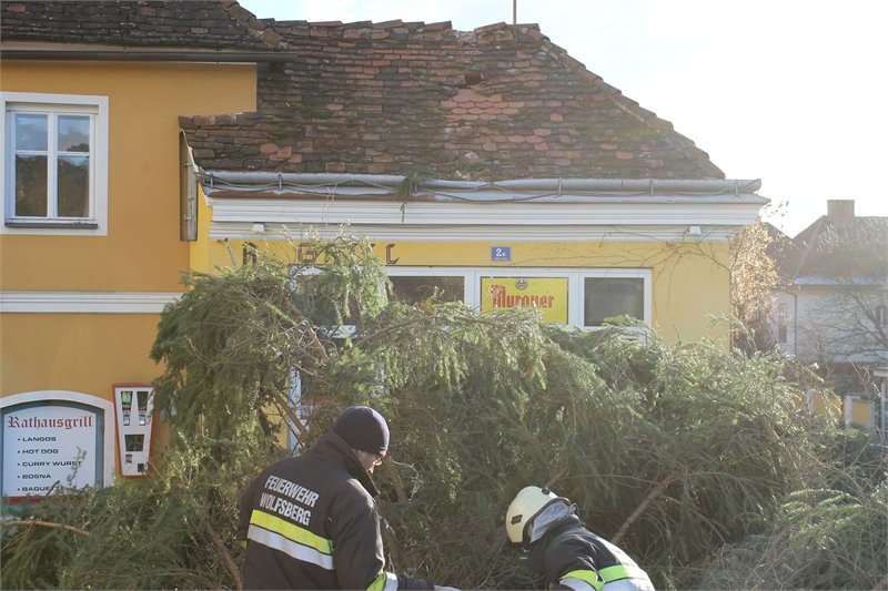Der Christbaum, welcher alljährlich von der Stadtgemeinde vor dem Rathaus aufgestellt wird, brach durch heftige Sturmböen um und beschädigte ein gerade vorbeifahrendes Fahrzeug und ein Gebäude. Der Baum wurde von der Feuerwehr Wolfsberg mittels Motorsägen und Seilwinde entfernt.