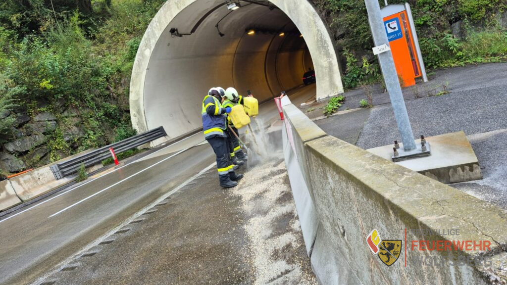 Am 29.09.2025 wurden die Feuerwehren Wolfsberg und Bad St. Leonhard zum Binden von Betriebsmittel auf die A2 Südautobahn gerufen. Aus bisher unbekannter Ursache kam es zu einer Leckage bei einem Dieseltank eines Sattelzugs vor dem Portal des Gräbern Tunnels. Die Spur des Treibstoffes erstreckte sich dabei über 500m . Durch die gute Zusammenarbeit konnte die Verunreinigung rasch gebunden und der auslaufenden Kraftstoff aufgefangen werden. Im Anschluss wurde der Tank durch ein örtliches Abschleppunternehmen ausgepumpt und der LKW fahrtauglich gemacht. Die Einsatzbereitschaft konnte nach ca. zwei Stunden wiederhergestellt werden.