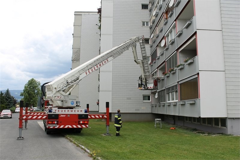 Eine betagte Dame kam aus unbekannter Ursache in ihrer Wohnung zu Sturz und konnte nicht mehr selbstständig aufstehen. Da der Wohnungsschlüssel innen steckte und die Wohnungstüre versperrt war, konnten auch die Angehörigen nicht in die Wohnung gelangen. Die Feuerwehr Wolfsberg konnte über den Balkon des Mehrparteienwohnhauses rasch in die Wohnung gelangen. Dort wurde die Bewohnerin mit Verletzungen unbestimmten Grades vorgefunden und nach der Erstversorgung durch das anwesende RK Team mit Verletzungen unbestimmten Grades mittels TM 37 über den Balkon geborgen.